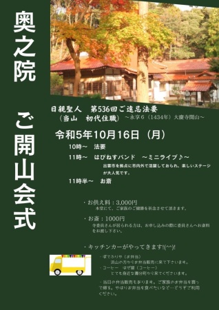 大慶寺 奥之院 日親上人法要 10月16日(月)10時~ ♪はぴねすバンド ミニライブ♬