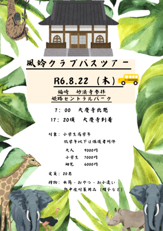 大慶寺の寺子屋(風鈴クラブ) 🚌バスツアー「子どもたちのお寺参りといのちの見学!」